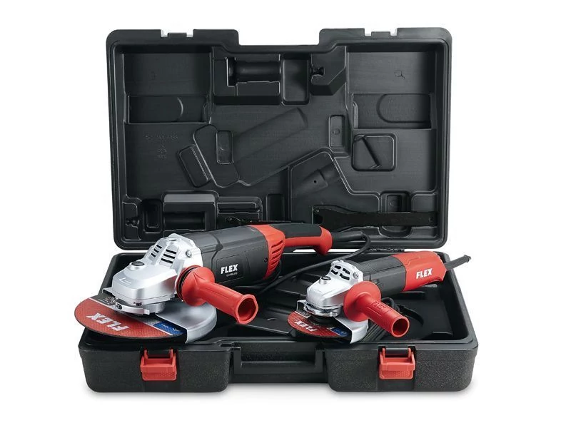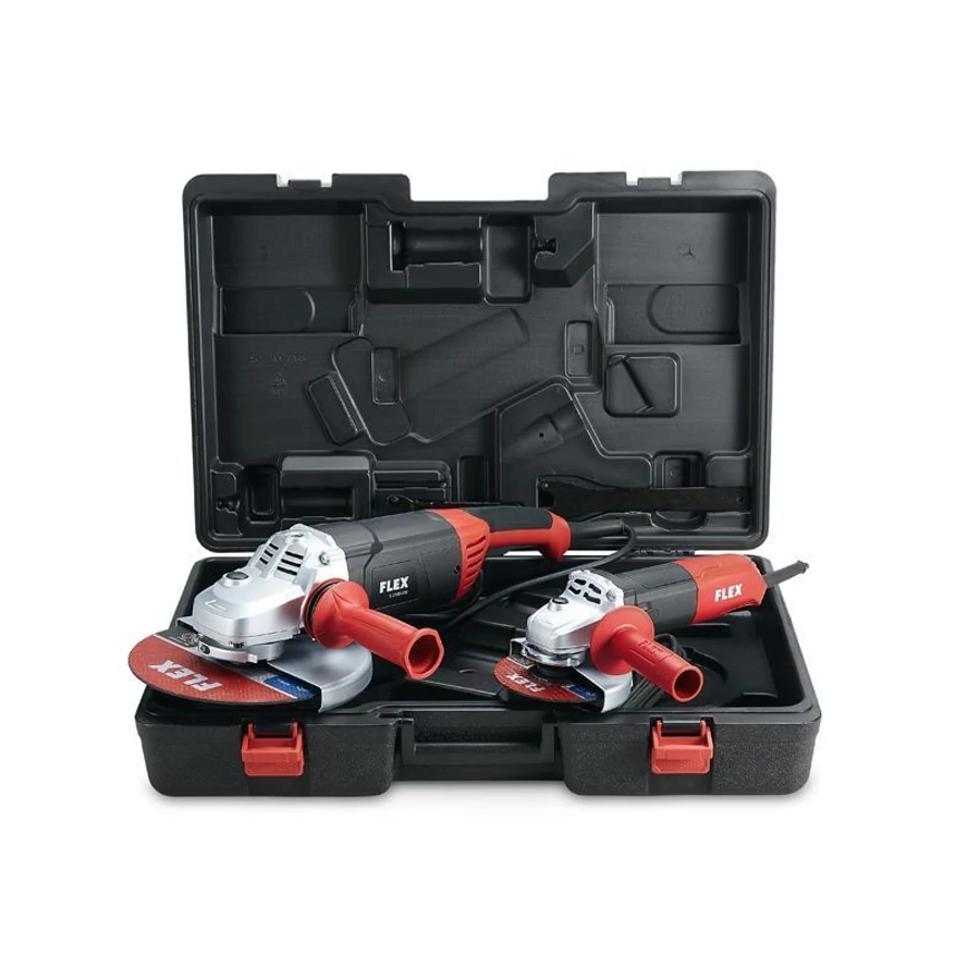 A két sarokcsiszoló egy ütésálló műanyag kofferben tárolható.