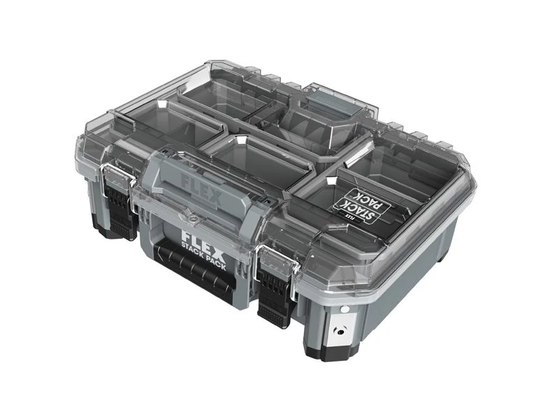 - A robusztus STACK PACK tároló- és szállítórendszerrel a szerszámok és tartozékok könnyen az építkezés helyszínére szállíthatók. A dobozok ütésálló műanyagból készülnek, alumínium erősítésű sarkokkal, amelyek megvédik a szerszámokat és tartozékokat a legkeményebb építési helyszíni körülményektől. A dobozok strapabíró fémretesszel rendelkeznek, a további fogantyúkkal pedig rugalmas és kényelmes kezelést biztosítanak. A reteszelő gyorscsatlakozós rögzítők lehetővé teszik az egyes dobozok gyors, rugalmas és erőfeszítés nélküli csatlakoztatását, így a tárolórendszer a felhasználó egyedi igényei szerint összeállítható. A standard készlet egy kivehető teleszkópos fogantyúval ellátott kocsiból, Ø 23 cm-es robusztus kerekekkel, egy nagy hordozódobozból és egy közepes dobozból áll, gázrugókkal, valamint egy átlátszó fedelű nagy rendszerezőből.