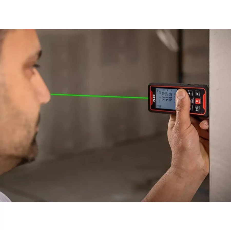 Zöld lézeres távolság-, terület-, térfogat-, és szögmérő, cserélhető akkumulátorral